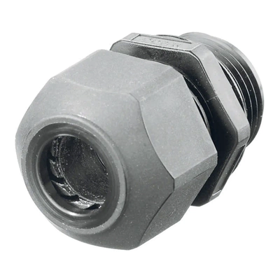 Conectores de cable, estilo europeo, para cable de .59'-1', 1' NPT, gris, el cuerpo del conector es un diseño de una pieza con roscas mecanizadas.